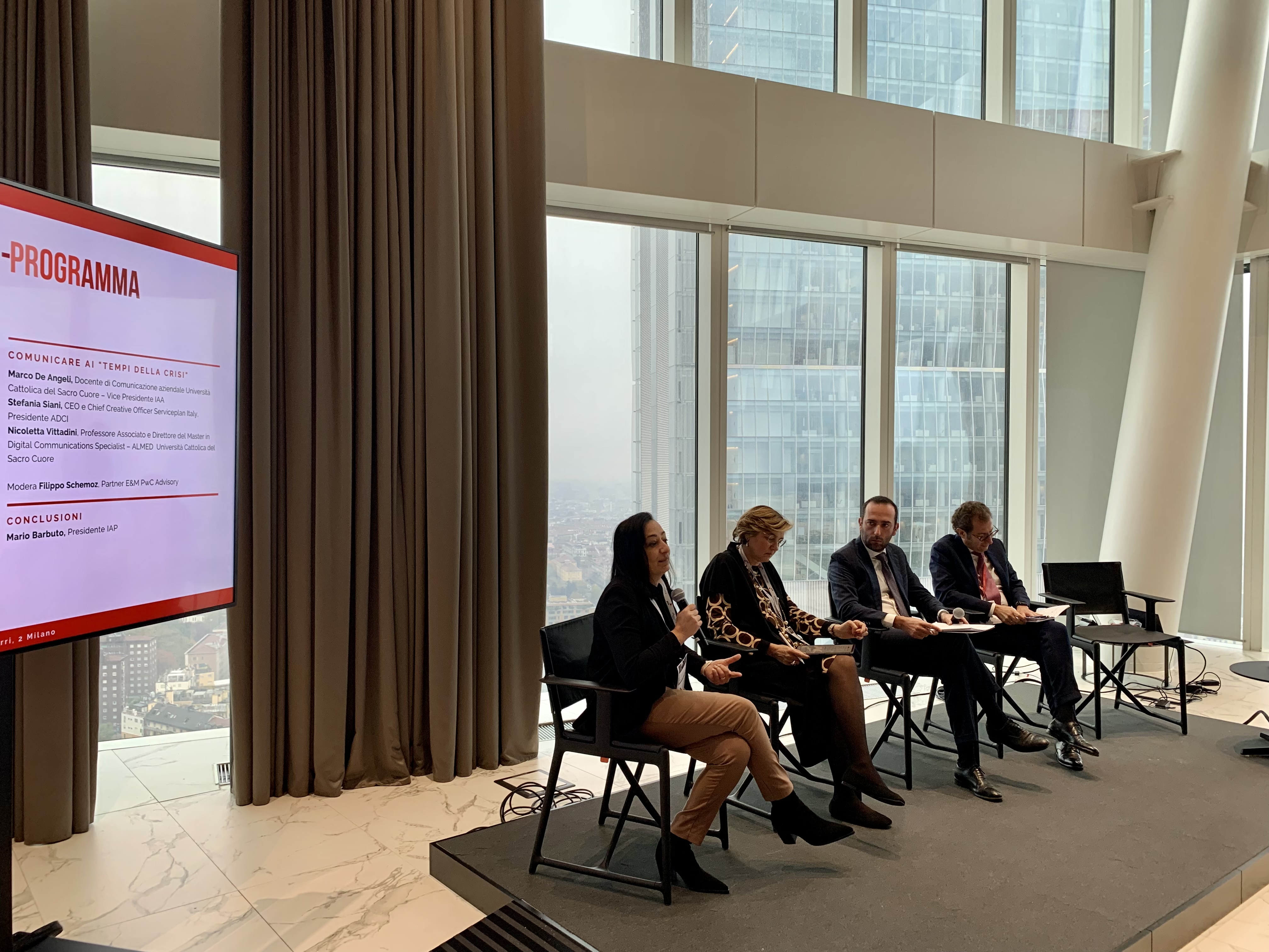 La seconda tavola rotonda, “Comunicare ai tempi della crisi”, moderata da Filippo Schemoz di PwC, ha fatto il punto su come la comunicazione commerciale si stia adeguando e in che misura allo scenario globale post pandemico. La pandemia, oltre al conflitto non lontano dal nostro paese, l’incremento del costo di beni essenziali e energetici, la conseguente diminuzione del potere d’acquisto dei consumatori pongono forti sfide a chi comunica.