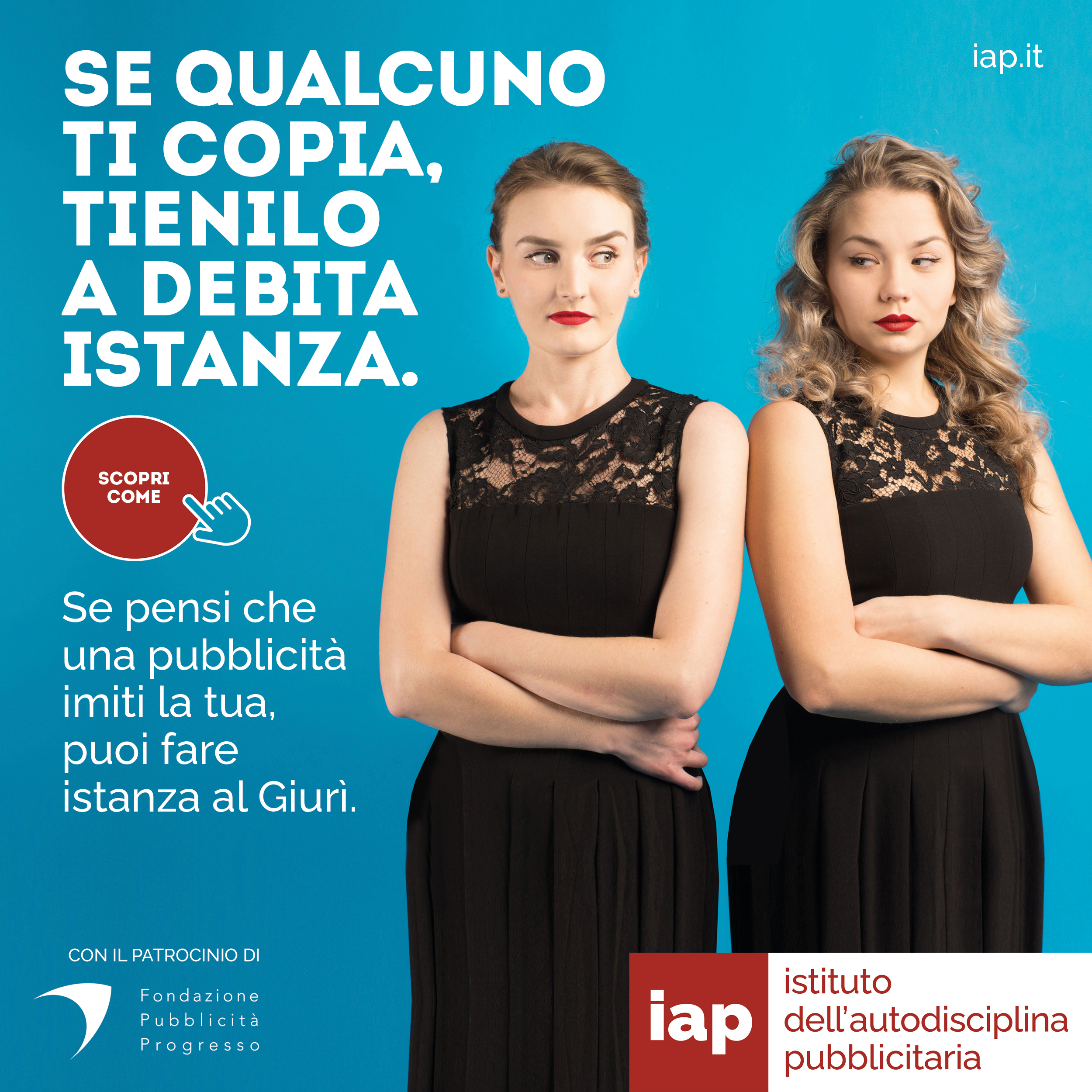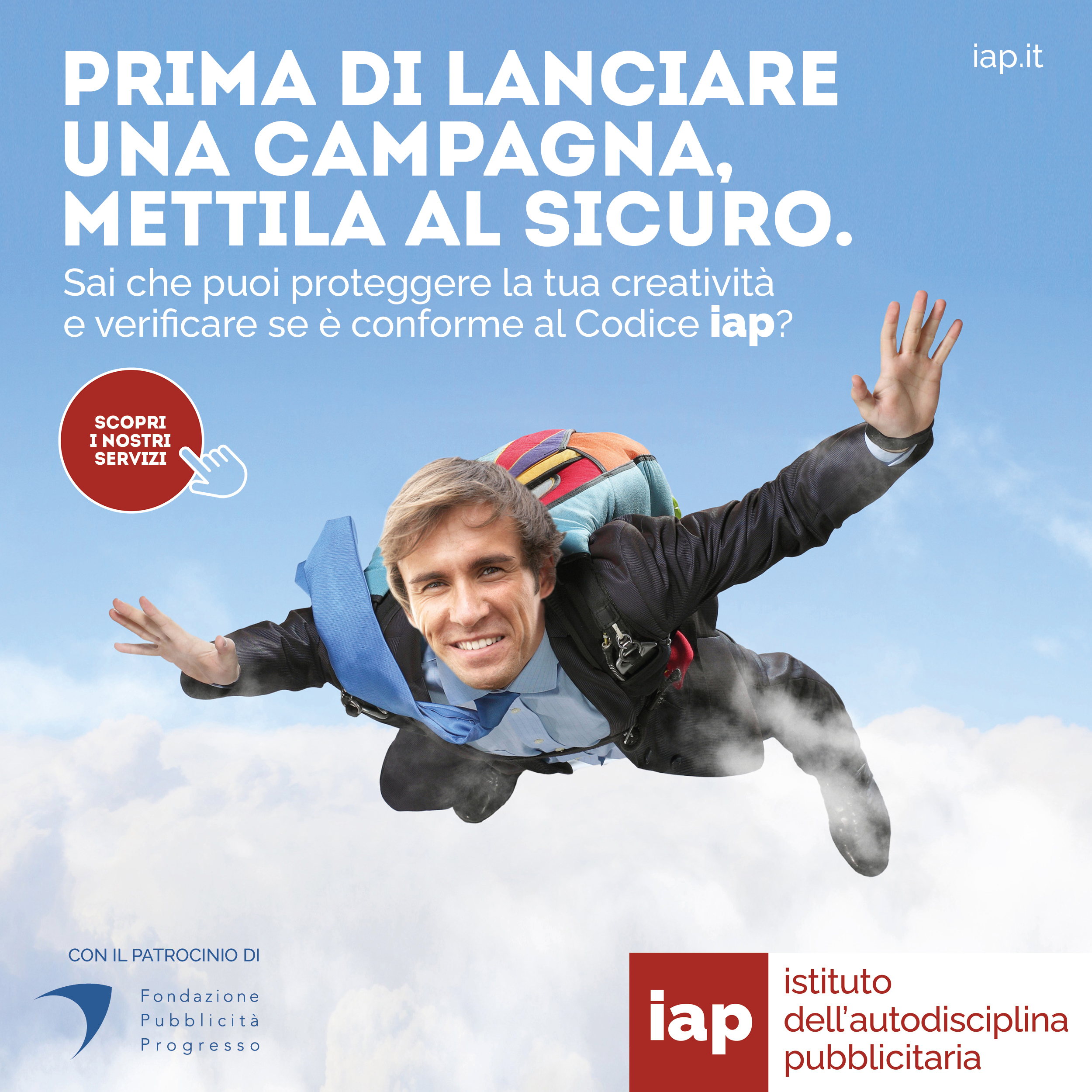La principale mission dell’Autodisciplina pubblicitaria è il controllo dei contenuti pubblicitari, affinché i messaggi rivolti ai consumatori siano corretti, non ingannevoli, e nel contempo le aziende possano contare su regole per una leale concorrenza. L’Istituto dell’Autodisciplina Pubblicitaria offre però anche il più rilevante, concreto e autorevole presidio a tutela della creatività pubblicitaria. La nuova campagna pubblicitaria IAP è specificatamente dedicata alla promozione degli strumenti di tutela della creatività, che l’Istituto offre ad aziende e ad agenzie pubblicitarie.