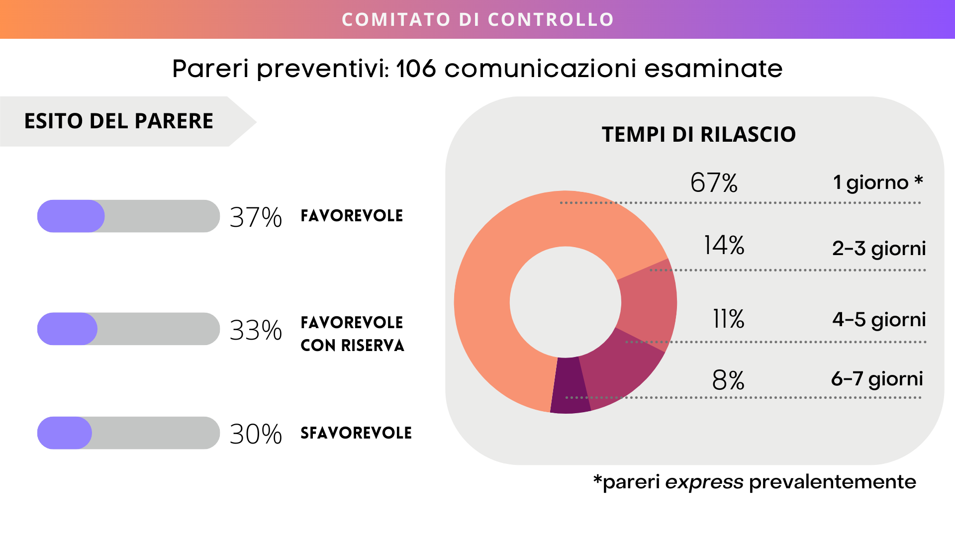 Il Comitato di Controllo è l’organismo autodisciplinare di tutela del consumatore. Ma anche di aiuto alle aziende per formulare messaggi corretti, attraverso la richiesta di pareri preventivi. Nel 2022 il Comitato di Controllo ha rilasciato 106 pareri, grazie ai quali gli inserzionisti hanno potuto verificare la conformità dei propri messaggi pubblicitari alle norme del Codice prima della loro diffusione. Un servizio che si conferma molto utile, oltre che estremamente celere: il 67% dei pareri preventivi è stato rilasciato infatti entro un solo giorno lavorativo. I settori merceologici che con più frequenza hanno richiesto la verifica preventiva dei propri messaggi sono stati: banche e investimenti (19,8%), elettronica (18%), integratori alimentari (12,2%) e prodotti alimentari e bevande analcoliche (12,2%).